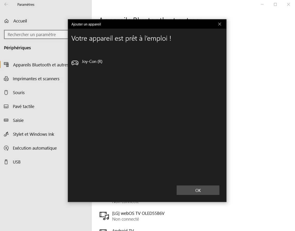 Votre Joy-Con devrait ensuite apparaître dans la liste des appareils Bluetooth disponibles. Sélectionnez-le pour terminer l’appairage.