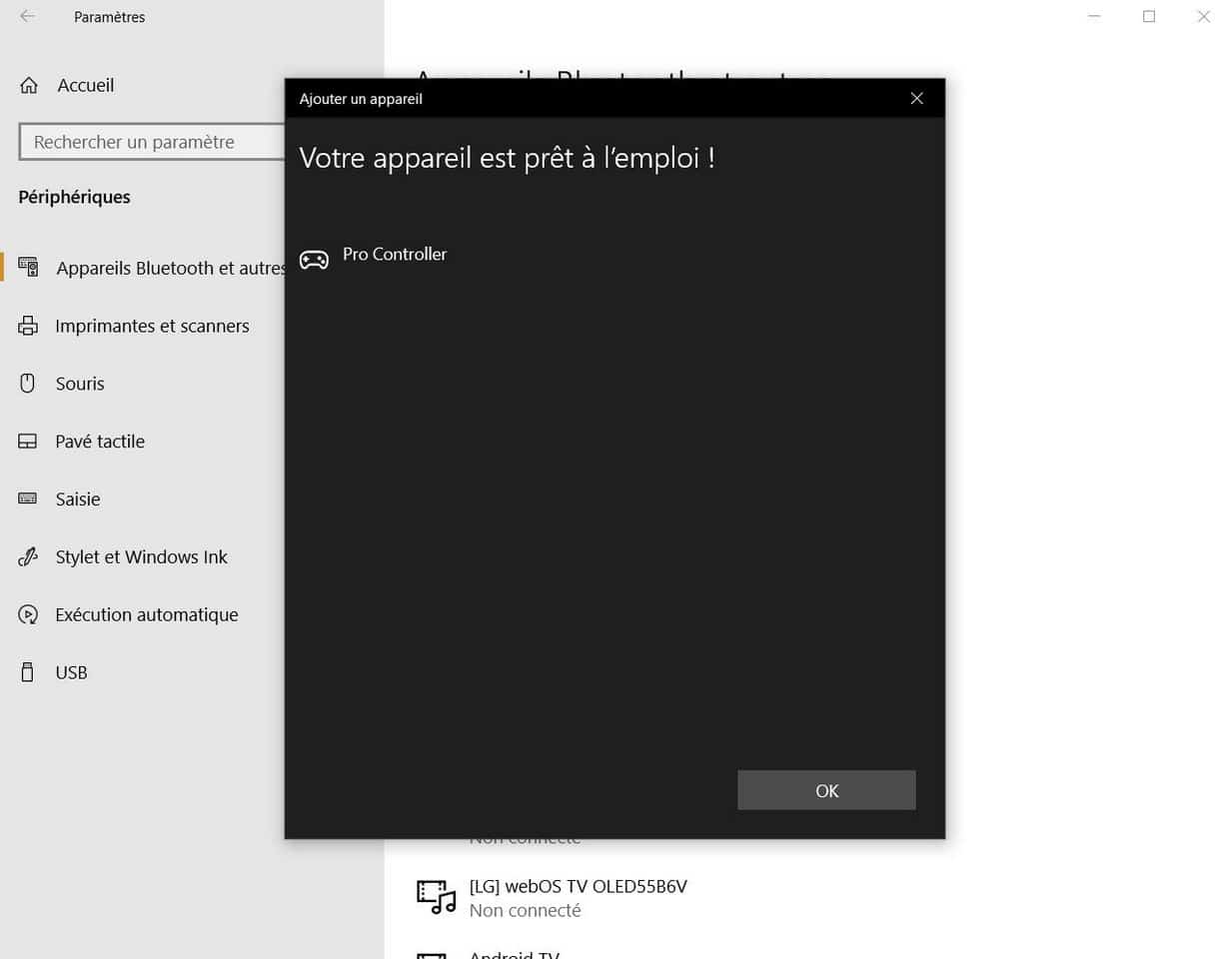 Le Pro Controller apparaît désormais dans la liste des périphériques détectés. Sélectionnez-le et la connexion s’établit.