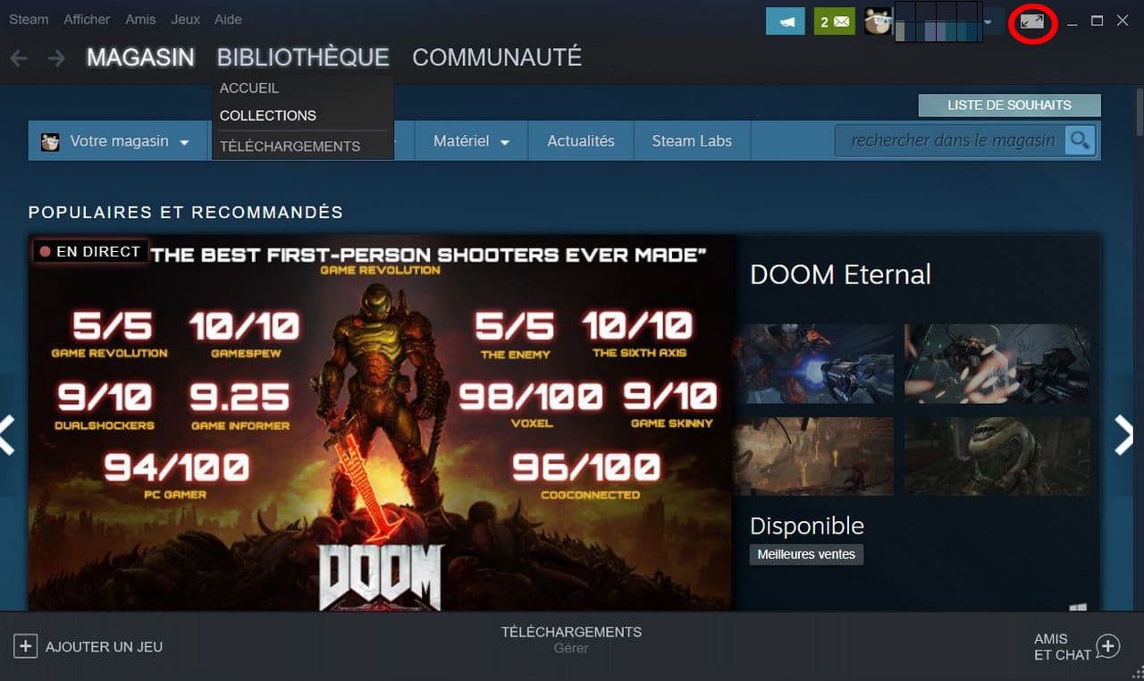Lancez Steam et basculez en mode « Big Picture » grâce à l’icône en haut à droite.