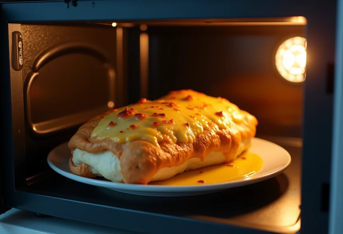 Une fois le cordon bleu prêt, placez-le dans un récipient adapté au micro-ondes. Réglez l’appareil à une puissance moyenne pour un réchauffage progressif, généralement entre 50% et 70% de la puissance maximale. Trop de puissance dessècherait la viande et compromettrait la texture de la panure.