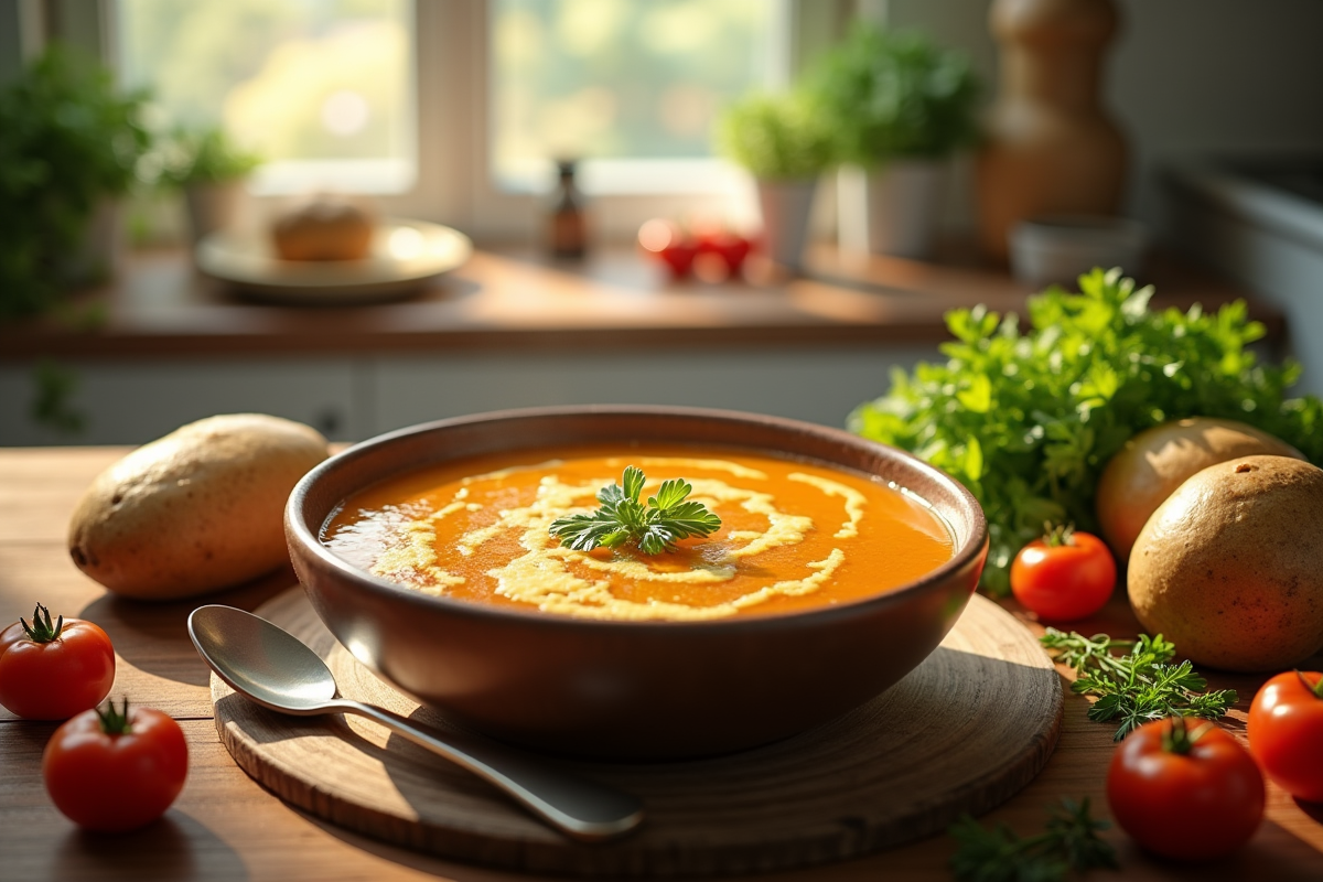 - Faible en calories : Une portion de soupe de pommes de terre est peu calorique, ce qui permet de contrôler l’apport énergétique tout en restant nourri.