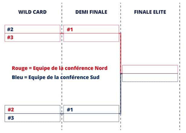En cas de victoire finale, deux clubs gagnent leur place pour la D2. Les champions de chaque conférence s’affrontent ensuite pour le casque d’argent.