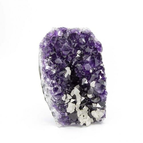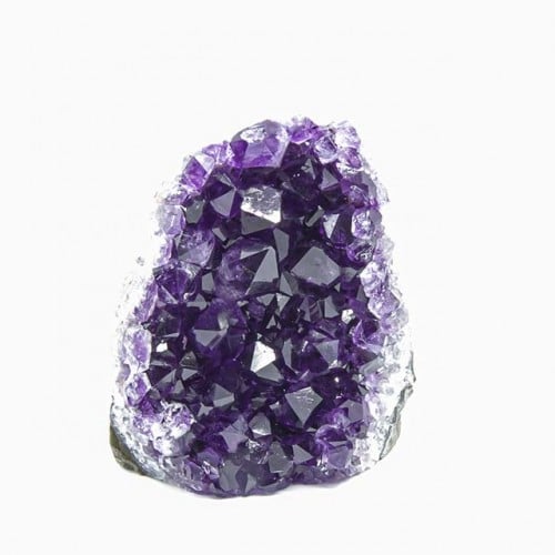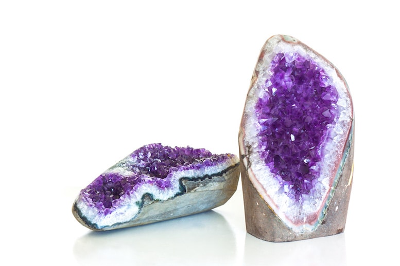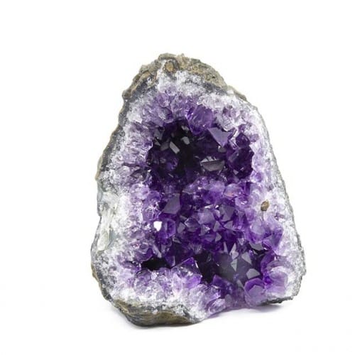 Les géodes d’améthyste servent aussi à nettoyer et recharger d’autres pierres. Pour elles-mêmes, purification au soleil et recharge à la nouvelle lune sont recommandées.